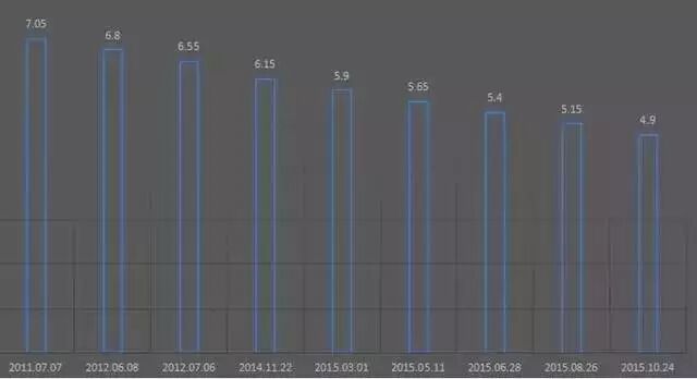 5年期以上贷款基准利率调整情况(单位:%)数据来源:人民银行
