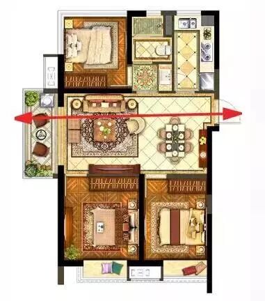 “穿堂煞”是指气流从入户门可以直接吹到窗户或者阳台的户型格局,这种户型的对流比较好,如果是门朝北,客厅朝南,夏天会比较凉快,很多人也还比较喜欢这样的户型,但也要注意分清楚朝向。这种空气对流太旺的户型,老人一定不能住,容易引起头痛,对身体其他方面也不好。当然,也不是没有办法改造,可以在入户门处加个玄关,这样可以阻挡一部分空气的进入。